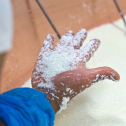 Il latte lavorato in caldere di rame è composto da una parte di latte affiorato naturalmente e da una parte da latte intero, con lo scopo di ottenere un prodotto dalle pregiate qualità organolettiche.